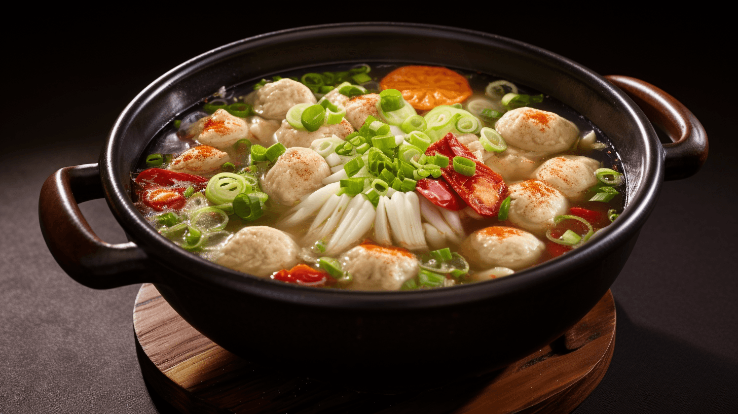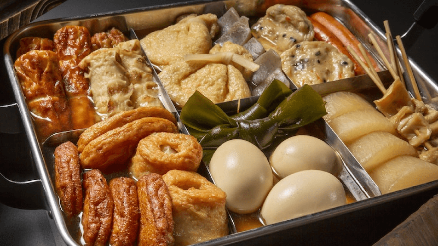 To make a tasty pot of oden, mix Awase dashi, sake, mirin, soy sauce, and salt to make a rich soup. Get a variety of foods, such as different kinds of fish cakes and fish balls (nerimono), daikon radish, konnyaku, and boiled eggs. Then, put everything in a big pot and let it simmer for 25 minutes. Finally, add the hanpen and mochi kinchaku. Simmer for three more minutes, and then serve the tasty oden for a rewarding Japanese hot pot experience.